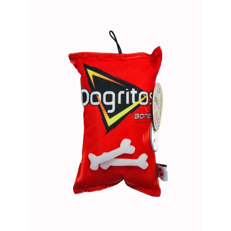 The perect snack chip without the calories! Made of a durable canvas with cute screen printing. Perfect for play time or nap time as a pillow! Squeaker hidden in every bag!
