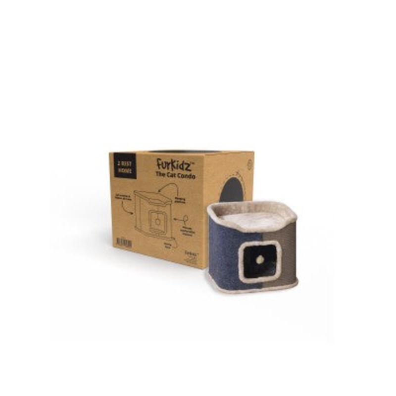 The Furkidz Cat Condo is a cat scratcher, hiding hole and resting platform in one gorgeous design. The scratching post offers an indoor alternative to your curtains and furniture to satisfy your cats natural instinct to scratch and sharpen its claws. This