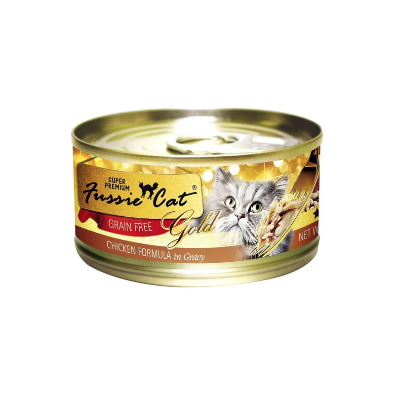 Description Suggested FeedingIngredientsGTD AnalysisFussie Cat Chicken in Gravy Canned Cat Food starts with meat, is low in carbs and includes a complete spectrum of essential vitamins and minerals. You can be sure your kitty is getting all the necessary a