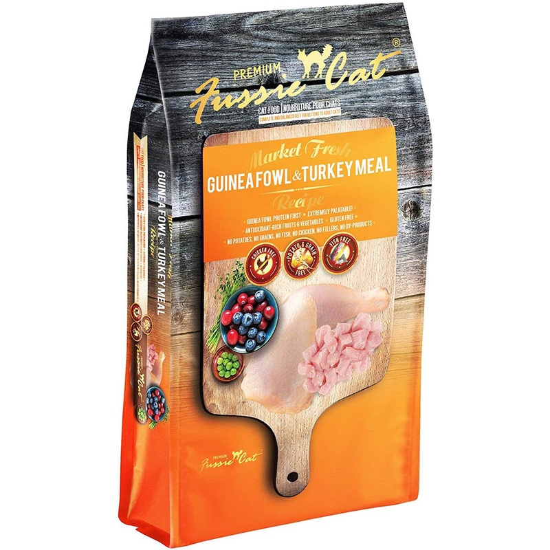 Fussie Cats Guinea Fowl & Turkey Recipe is crafted with real, recognizable ingredients you can feel good about. Cats are notoriously fussy when it comes to their food and require a diet based on animal proteins to truly thrive. That’s why Fussie Cat tailors the taste of each recipe based on actual feline feedback to ensure it’s equally delicious. This gluten-free recipe features real guinea fowl first followed by other wholesome ingredients like turkey meal, peas, turkey, cranberries and blueberries, so your cat can get the protein and antioxidant fruits and vegetables she needs.