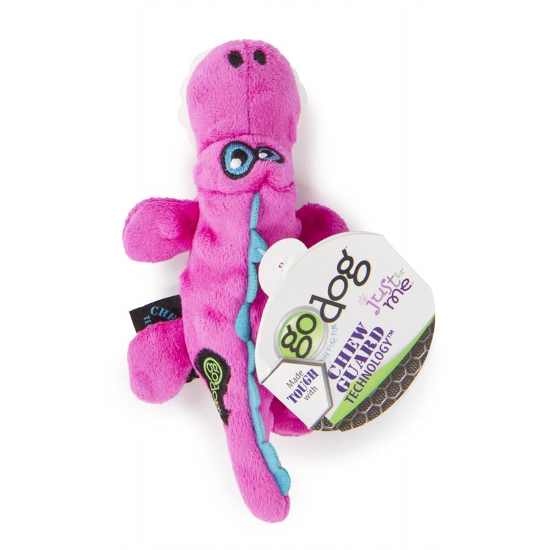 goDog Gators colorful swampdwellers have minimum stuffing for maximum tuggabletossable fun Made with soft bubble plush fabric dogs love and lined with Chew Guard Technology these toys stand up to tough play Available in mini Just For Me small and large for dogs of all sizes and breeds to enjoy in pink and blue Go GatorsgoDog toys and travel products are produced from a foundation of innovation durability and most importantly FUN Our silly colorful plush dog toys feature Chew Guard Technology enabling them to last longer than standard plush toys and are backed by our Chew Guard Guarantee Our Rope Tek fetch and chase toys utilize our patent pending manufacturing process ThermaFuse Technology bonding climbing rope with nontoxic polymer We continue to strive for innovation and fun and are expanding into unique product lines with new durable ways to play and enjoy lifeTrustworthy and family friendly goDog toys and travel products are designed to child safety standards and we utilize environmentally friendly sustainable materials wherever we can backed by our 100 satisfaction guarantee pet parents can rest easy with goDog products Read all packaging instructions warnings and cautions upon receipt Packaging contains small parts discard after opening