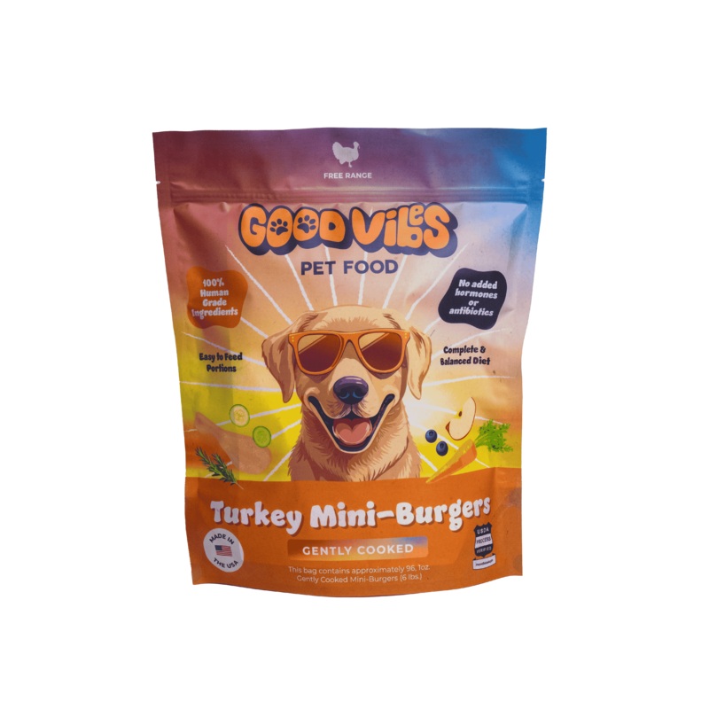 Good Vibes Gently Cooked Turkey Recipe is formulated to meet the nutritional levels established by the AAFCO Dog Food Nutritional Profiles for all life stages.