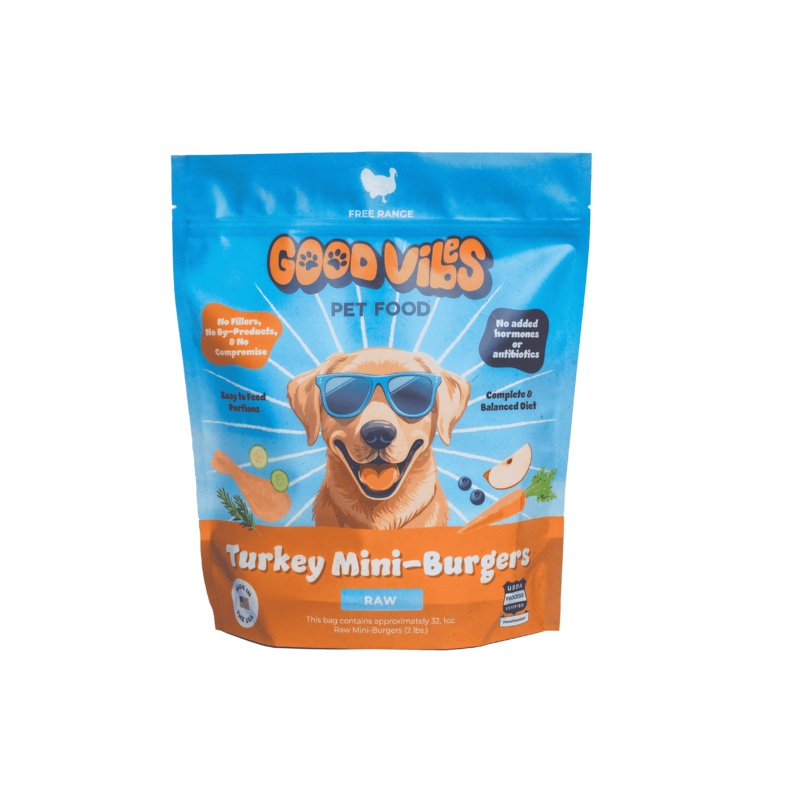 Good Vibes Raw Turkey Recipe is formulated to meet the nutritional levels established by the AAFCO Dog Food Nutritional Profiles for all life stages.