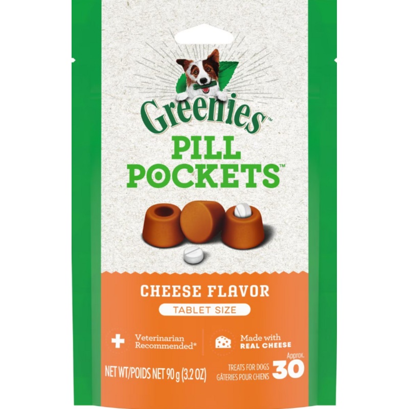 - Contains one (1) 3.2-oz. 30-count pack of GREENIES PILL POCKETS Tablet Size Dog Treats Cheese Flavor