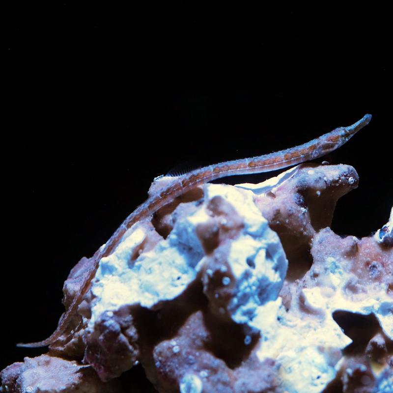 Gulf Pipefish are ademersal variety of pipefish, spendingmost of their time meandering around on the substrate and rocks. During feeding time, however, they become very lively and will free-swim in the water column hunting down frozen mysis shrimp. Pipefish are playful and socially engaging animals that make unique and wonderful pets.