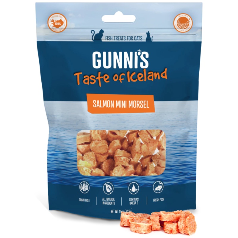 Our Salmon Mini Morsels are super tasty super premium cat treats made from from human-grade single ingredient whole Wolffish meat filets. Treat your cat with our “Taste of Iceland” experience, they will love it!