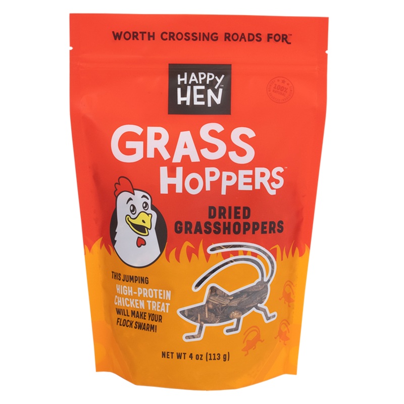 Patience, young chickens, your tasty treats are here! Grass Hoppers is the high-protein snack made from 100% all-natural grasshoppers. It's a hopping good time!100% All-Natural Dried GrasshoppersHigh in proteinNo need to refrigeratePerfect for training or