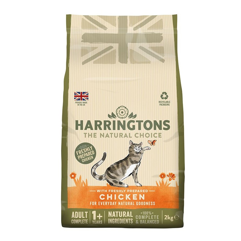 Introducing Harringtons Complete Chicken Adult Dry Cat Food Harringtons focuses on providing quality meals for your cat. Our crunchy biscuits are rich in freshly prepared meat and fish, offering nutritious animal protein for your feline friend. We use only natural ingredients, with no artificial colors or flavors. With Harringtons, you can trust you are giving your cat excellent care. Pure, natural goodness for all.