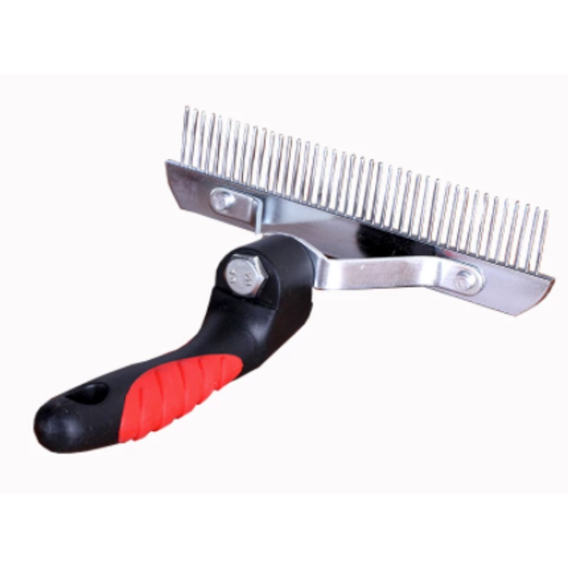 A huge rake for large breeds with thick undercoats, heavy steel construction means this rake will hold up to even the thickest or most tangled undercoats. 6" of brushing area and a thick, curved 5" handle.