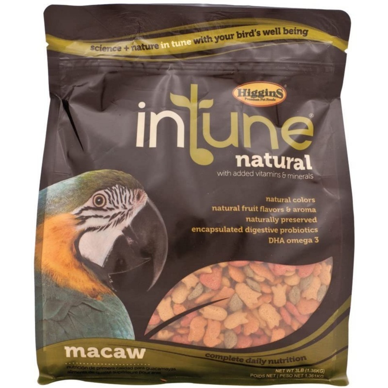 inTune Complete and Balanced Diet is the extruded nutrition that brings science and nature in tune with your pet birds well-being. inTune does not contain artificial preservatives or flavors. inTune uses colors sourced from seeds, spices and vegetables for natural, subtle colors. The tropical aroma youll notice as soon as you open the bag is derived from real banana, pineapple and citrus. inTune comes in unique shapes that are sized for your pet bird. Balancing these natural aspects, inTune has added vitamins, minerals, and amino acids. Our antioxidant formula contains balanced omega-3 & 6 fatty acids along with stabilized Vitamin C and Vitamin E to support the immune system. Fruits, vegetables, and highly cooked grains are added to support the digestion of carbohydrates. Protected probiotics (microencapsulation of the probiotic bacteria) are added to promote the delivery of active, beneficial bacteria to the intestinal tract, in order to support digestive health. Keep your birds nutrition, inTune!