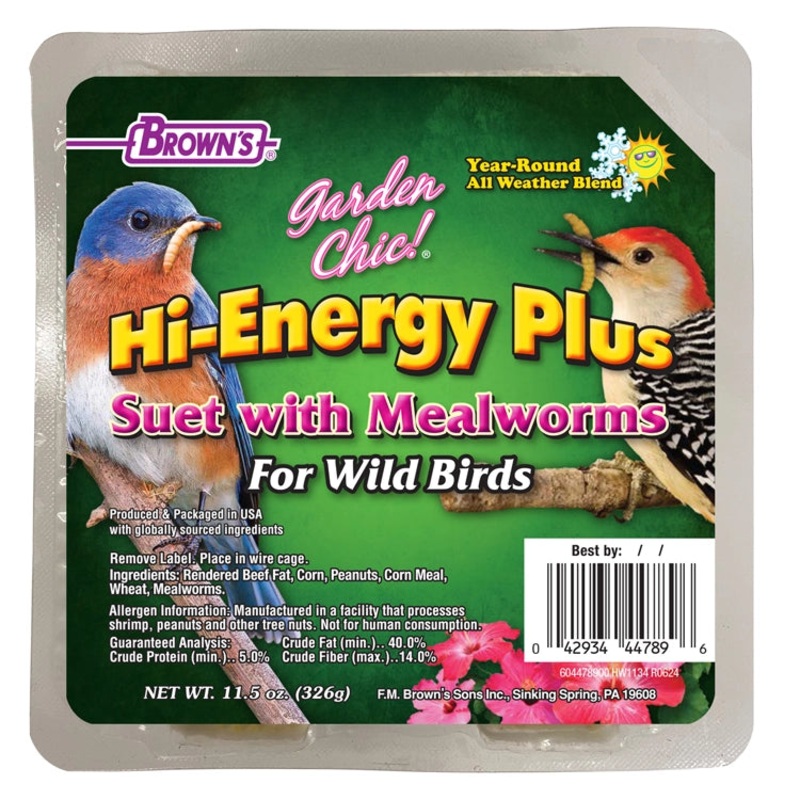 Powerful Nutrition with Real MealwormsGive your backyard birds a natural, energy-packed food source they love. These suet cakes combine dried mealworms with fresh suet, peanuts, and wholesome grainsperfect for insect-eating birds throughout every season. J