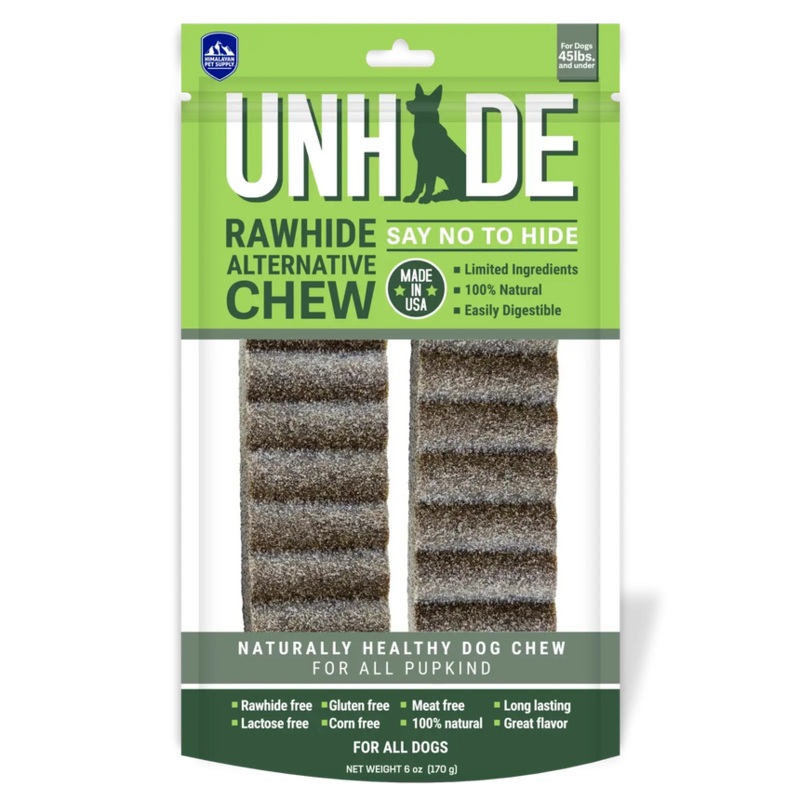 Just say NO to rawhide! Unhide is an innovative natural cheese and antler chew that is long-lasting, all-natural, and easily digestible. With its excellent flavor, you will provide your dog with loads of chewing entertainment. Unhide is proudly handcrafted