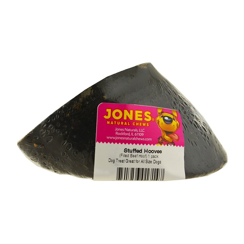 Beef hooves are a great source of protein and one of the most popular dog chews. So we stuffed the hooves full of real chicken and rice flavored goodies. Stuffed hooves will keep any size dog busy for hours. All Jones products are grown and made in the USA
