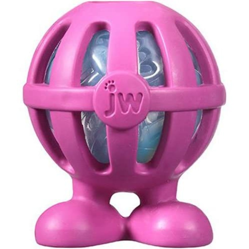 JW Crackle Heads Cuz is great for toss and fetch games. This long-lasting dog toy is fashioned with a tough outer rubber layer which provides a protective wall. Features the crackling sound of a water bottle that many dogs love.The outer layer has holes so that the crunchy sound is easily heard by your pet. The innovative design is very durable and is ideal for tough chewers. This helps to ensure that your dog enjoys this toy for a long time. This is a great toy for dogs that tend to get bored easily and may also help to prevent your dog from destructive habits. Ships in random fun assorted colors.