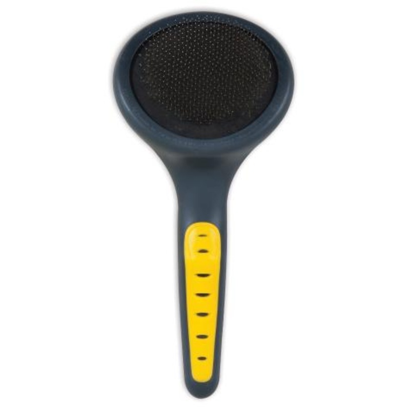 The JW GripSoft Slicker Brush is ideal for daily brushing to remove dead and shedding hair. It features an ergonomically designed rubber-sheathed handle with Gripsoft technology that provides you with extreme comfort and precision when grooming. Metal teet
