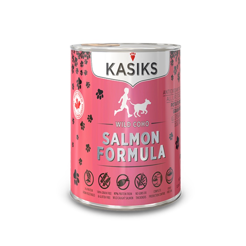 Description Suggested FeedingIngredientsGTD AnalysisKasiks Wild Caught Coho Salmon Canned Dog Food is a single protein canned dog food. This grain-free diet is so formulated for all life stages included for the growth of large breed puppies.Kasiks Highligh