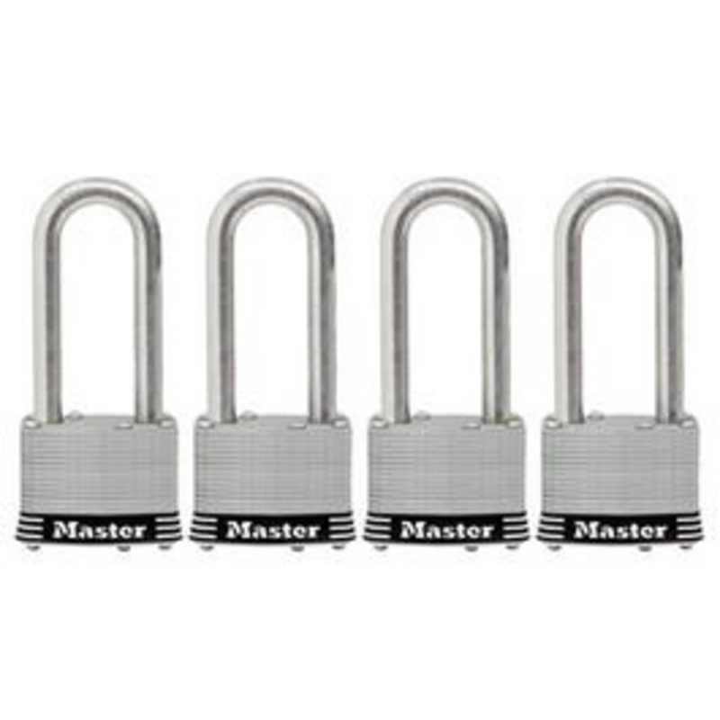 4 Pack, 2", Stainless Steel Laminated Padlock With 2.5" Long Stainless Steel Shackle For Superior Cut & Weather Resistance, 3/8" Shackle Diameter, Keyed Alike, Uses Master Lock Key Blank K1 Box Or Ilco Blank M1 TV #320-952.
