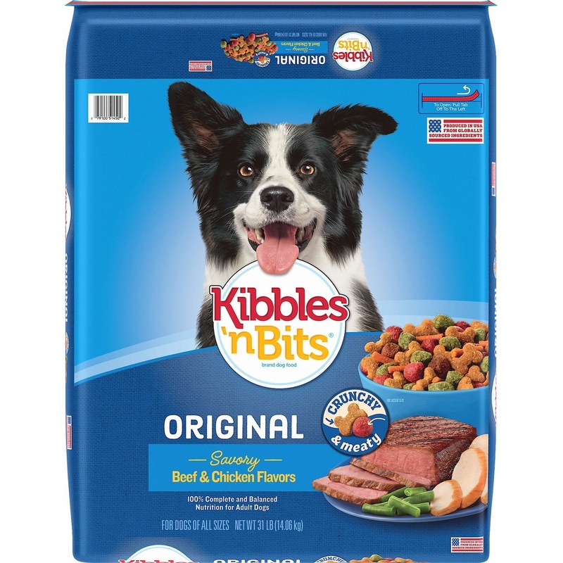 Give your pup the nutrition and flavor he loves with the Kibbles ‘n Bits Original Savory Beef & Chicken Flavors Dry Dog Food. This formula packs plenty of meaty taste into a blend of crunchy kibble and soft meaty bits made with the flavors of beef and chicken. Its loaded with high-quality protein to help support strong muscles, plus vitamins, minerals and antioxidants so its a complete and balanced diet for adults. Plus, its proudly made in the USA so its a satisfying meal you can feel good about serving your dog every day!