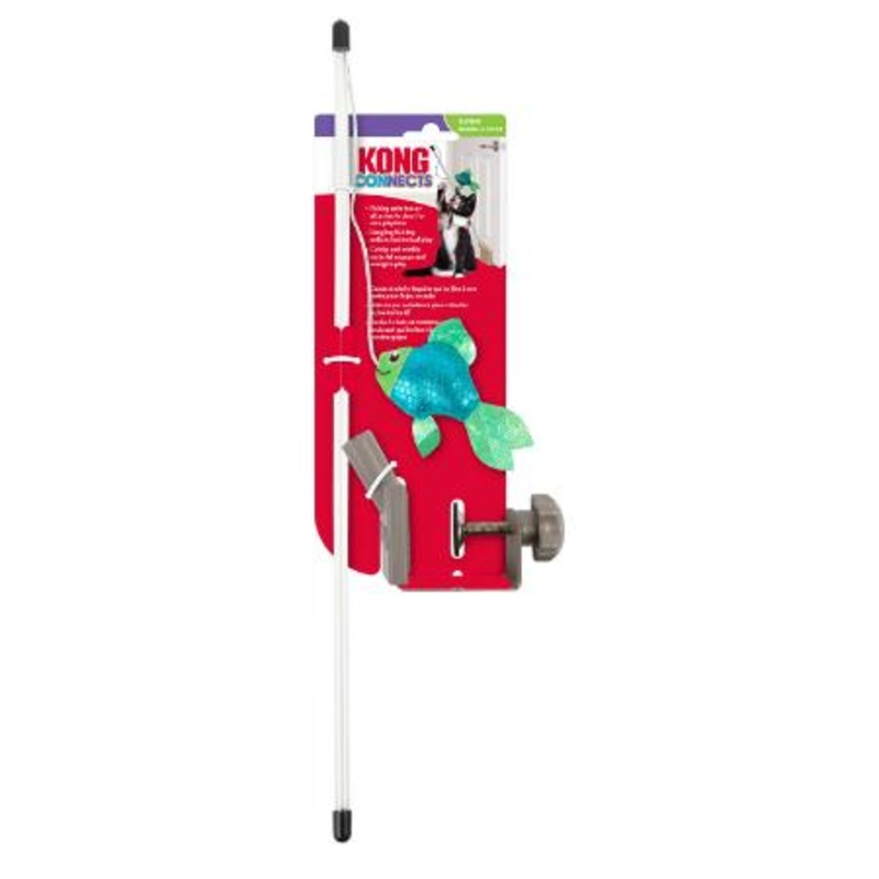 KONG Connects Angler Door Teaser Cat Toy ensures your cat has a catch of the day, every day! The fish at the end of the Teaser wand pole dangles and swings from a shiny elastic line, enticing instinctual batting, swatting, and capturing fun. The plush fish