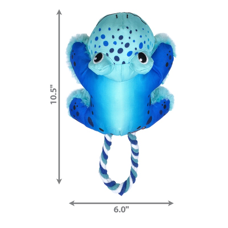 Cozie Tuggz Frogs rope handle is made from sturdy cotton rope knotted inside his body for instinct-satisfying tugging action. He squeaks and crinkles to keep the fun going for lots of healthy interactive play. Soft plush fur invites soothing snuggles betwe