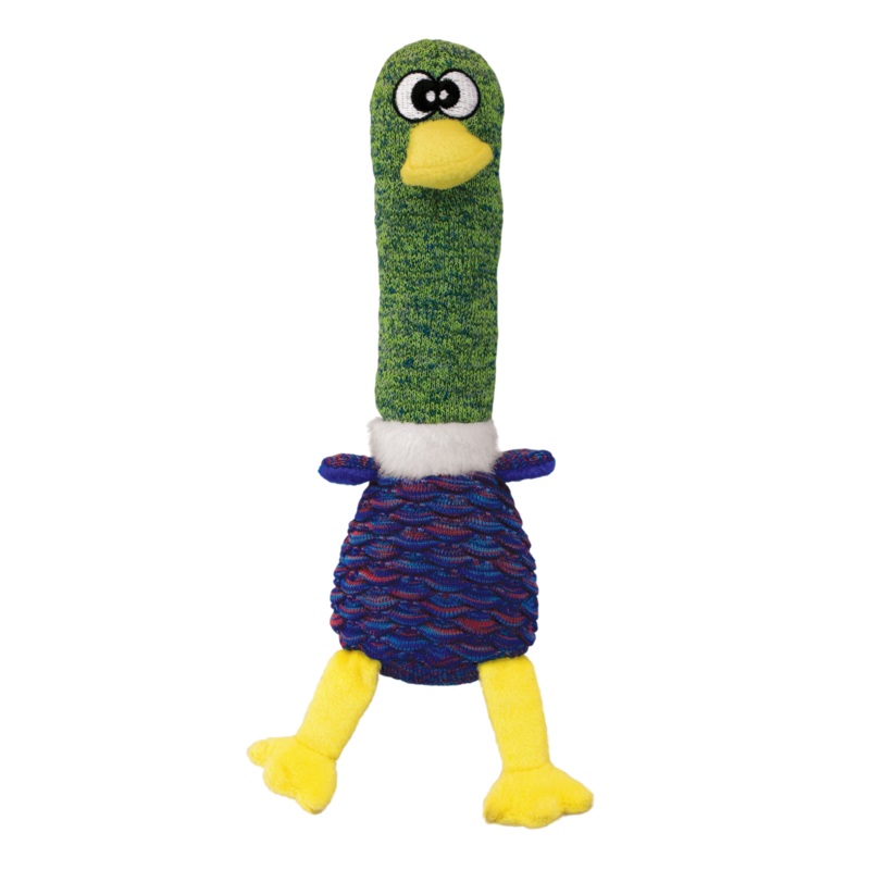 KONG Shakers Cuckoos tennis shoe material entices tugging and shaking instincts adding up to long runs of fun. A full-bodied, low tone squeaker pumps up indoor play sessions while crackle sounds and a long body keep dogs engaged. A flock of playful bird ch