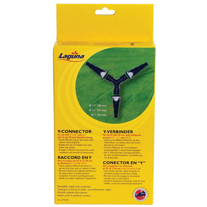 Better than flow-restricting T-connectors, Laguna Y-Connectors provide an easy and effective way of splitting water flow without reducing water pressure. Each Y-connector comes complete with 3 patented Laguna Click-Fit connectors that make installation qui