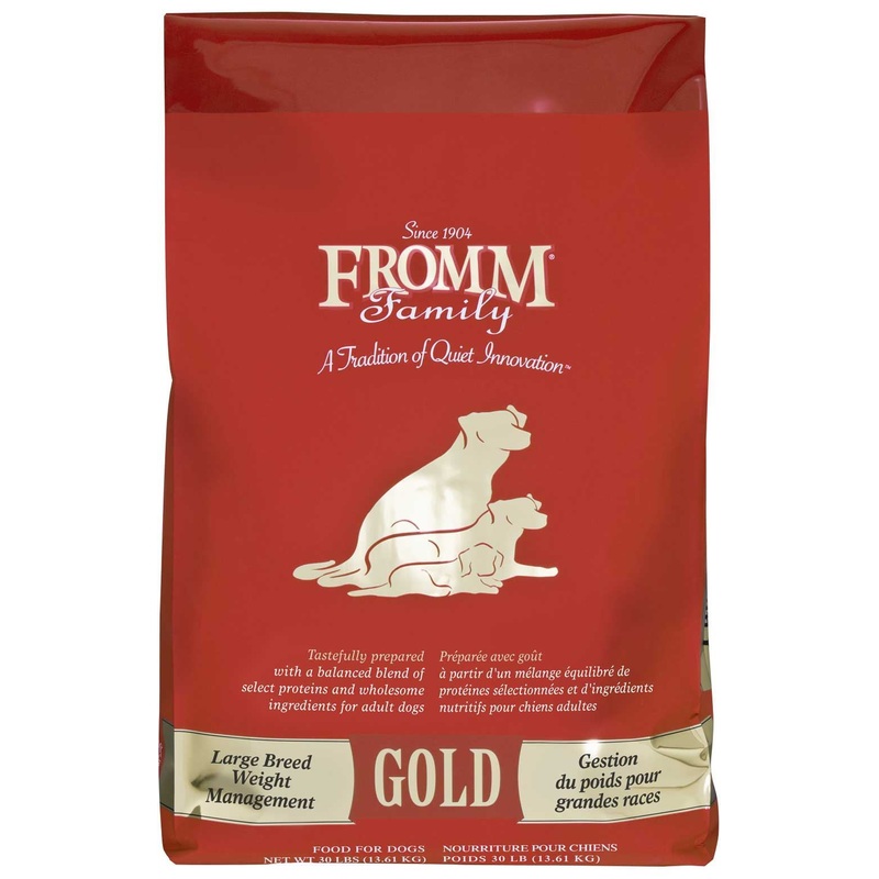DESCRIPTIONFromm Family Large Breed Weight Management Gold Food for Dogs is formulated to meet the nutritional needs of less active dogs with adult weights exceeding 50 pounds.