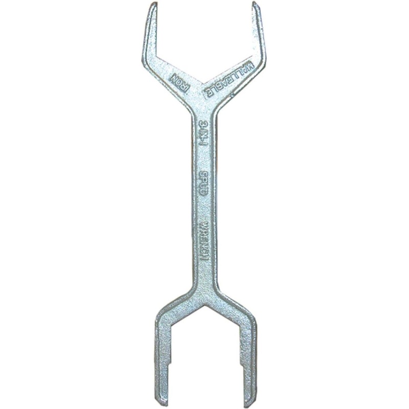 Removes jammed nuts from toilets, sink strainers, and drainage fittings.