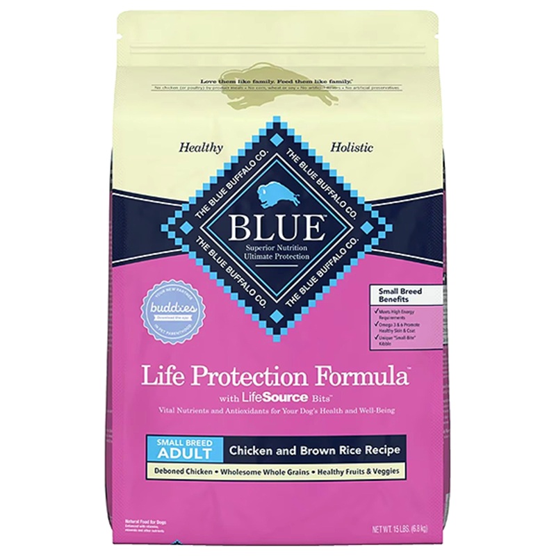 To help support the special needs of smaller dogs, BLUE Life Protection Formula dog food for Small Breeds is made with increased protein and carbohydrates to meet higher energy needs. It contains the ingredients you’ll love feeding as much as they’ll love eating. BLUE Life Protection Formula dog food is a product of the Blue Buffalo company. Based in the United States, Blue Buffalo makes premium-quality pet foods featuring real meat, fruit and vegetables.