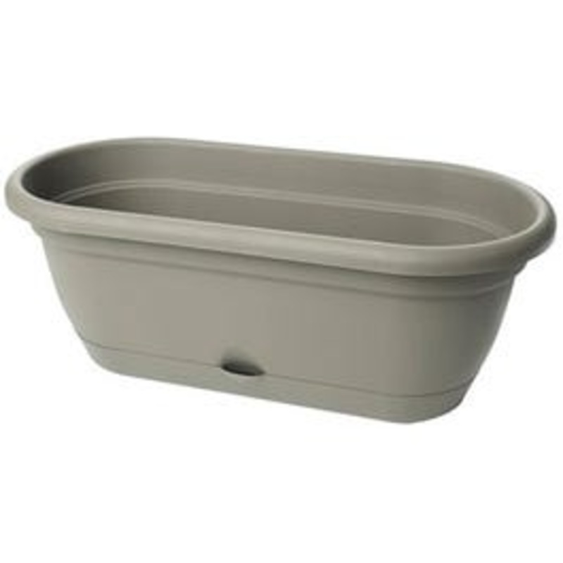 18", Peppercorn, Lucca Self Watering Window Box, Attached Saucer With External Watering Capabilities, Indoor/Outdoor Versatility, UV Protected, Reinforced Rim.