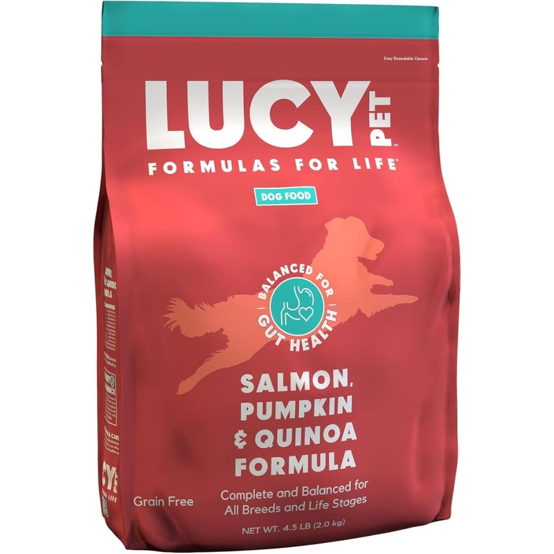 Lucy Pets Salmon, Pumpkin & Quinoa Dog Food improves gut health, supports a healthy immune system, heart health, skin & coat, and so much more!