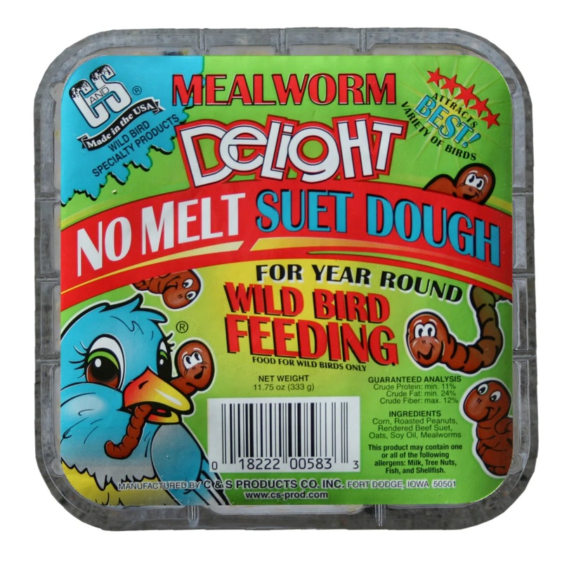 Attracts a variety of birdsGood for feeding all year roundComes in a convenient attractive packageExcellent variety and value for the moneyMealworm Delight is blending the same high quality beef fat with a base of corn meal and roasted peanuts. Other ingre