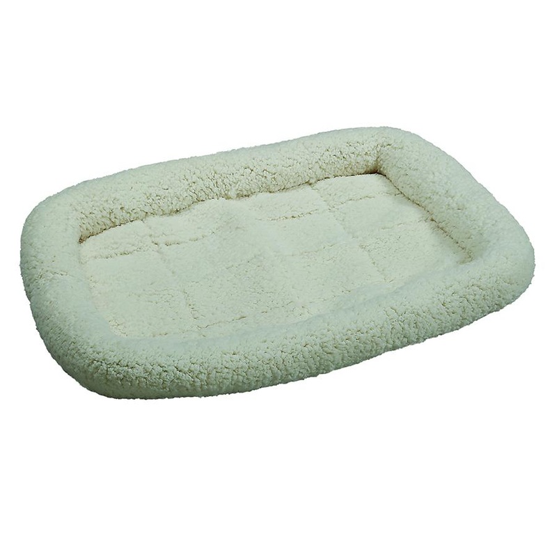 This fleece dog bed makes your pets crate nice and cozy. Ideal for use in dog crates, carriers, dog houses, and vehicles. Keeps pets warm in winter, has comfortable polyester-filled bolsters, a cushioned poly/cotton base, is completely machine washable and