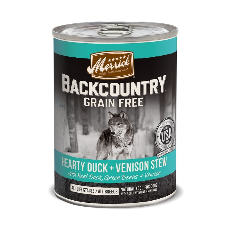 Merrick backcountry is packed with the things your dog loves to eat. This grain free food has big pieces of real deboned meat, fresh-cut vegetables and a hearty gravy.
