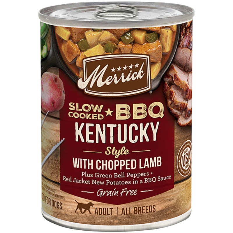 Merrick Grain Free Slow Cooked BBQ Kentucky Style with Chopped Lamb Dog Food is formulated to meet the nutritional levels established by the AAFCO Dog Food Nutrient Profiles for maintenance.