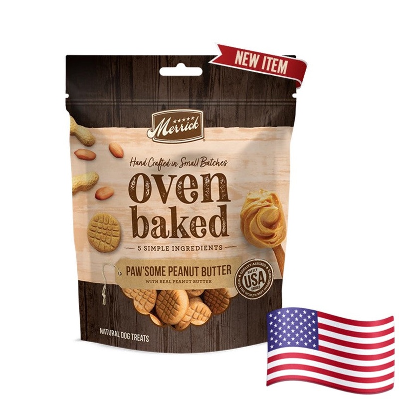 If youre looking for a healthy and delicious treat for your pup, Merrick Oven Baked Pawsome Peanut Butter Dog Treats are the perfect choice. Theyre made with all-natural ingredients, are free of artificial colors, flavors, and preservatives, and are oven-baked to perfection for a crunchy, flavorful snack that your pup will love.