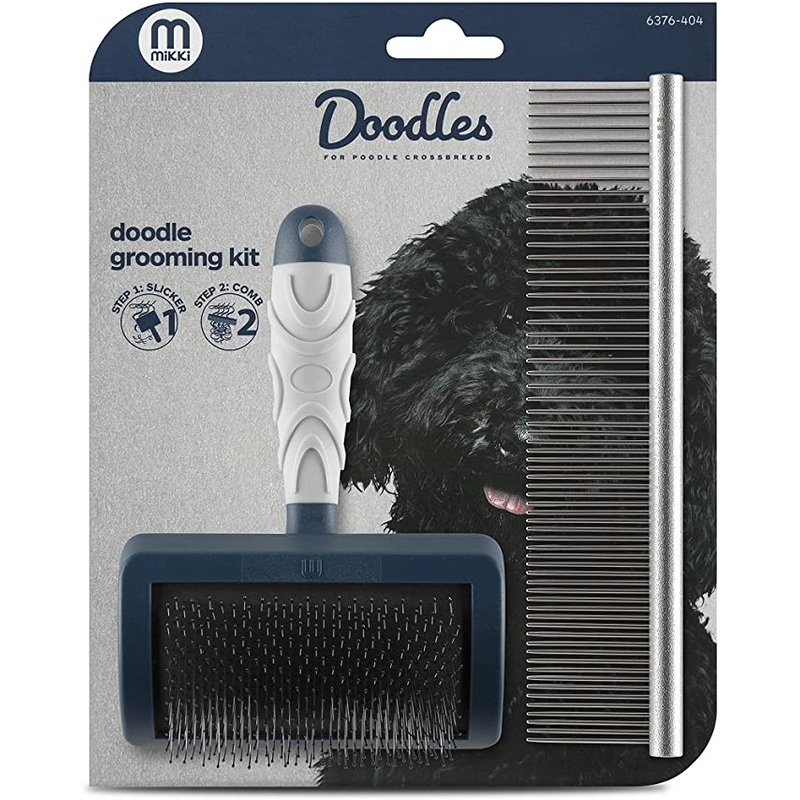The perfect pair for Poodle crossbreads. Remove dead hairs with the Slicker brush, then find and release knots and tangles with the comb.