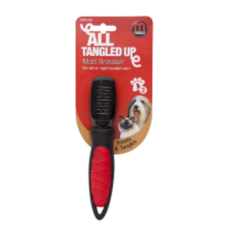 This brush is great for easy and efficient removal of tangles and matted fur. The stainless steel blade are sharp and shaped for optimum cutting. Te blades are easy to remove and reverse for left and right handed users. Ergonomic handle for comfort.