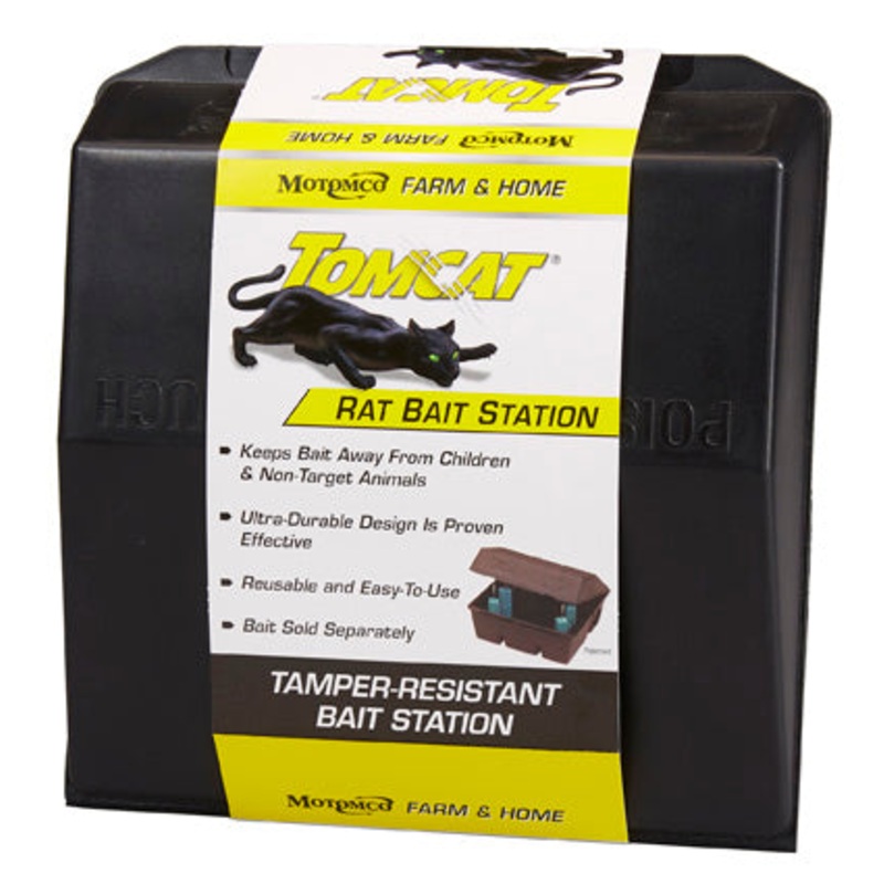 Tomcat Bait Stations provide security by keeping bait out of reach of children, pets, livestock and non-target animals.They increase the effectiveness of any bait by protecting it from the elements and providing a sheltered area where rodents feel comfortable feeding.The Tomcat Rat Bait Station is Motomco’s #1 selling station, popular with homeowners, producers and professionals.The keyless design and large bait area is easy to open and service, however it can also be secured with a zip tie, allen screw or other methods.