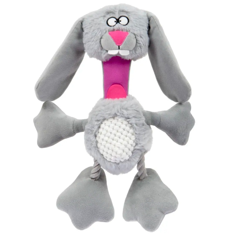 goDog Multi Tugs Rabbit Squeaky Plush and Rope Dog Toy With Chew Guard Technology is a fun combination of plush and rope toys. A great multi-textured toy to occupy your pup or to have a fun and bonding game of tug. Soft plush rabbit body slides up and down