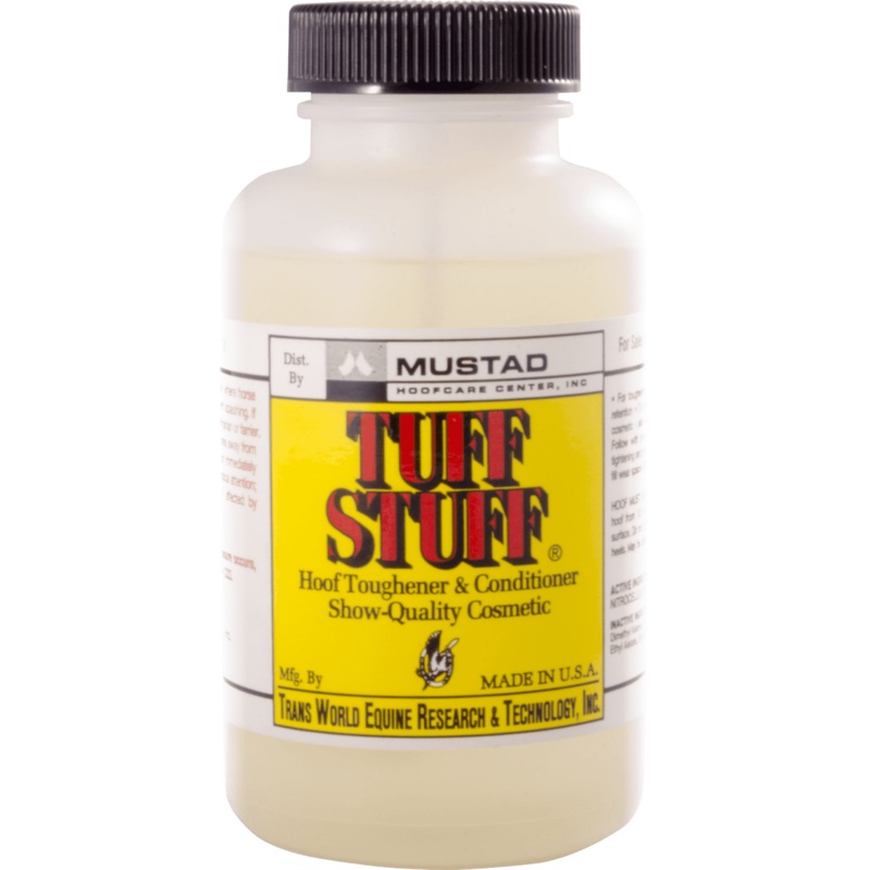 Hoof toughener & conditionerTuff Stuff is a hoof toughener & conditioner that's also a show quality cosmetic.Strengthens brittle, shelly, mushy or cracked hoof walls. Protects scuffed toes and guards against fungus, caustics, and bacteria.