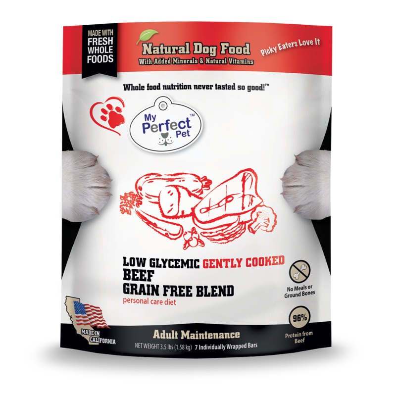 - 95% protein from Beef at My Perfect Pet, we care about the compassionate treatment of all animals, and are working to ensure that our beef ingredients are sourced from welfare-certified ranches and that our Buddys Glycemic Friendly Beef Blend earns a certification recognized by the ASPCAs Shop With Your Heart program by 2025.