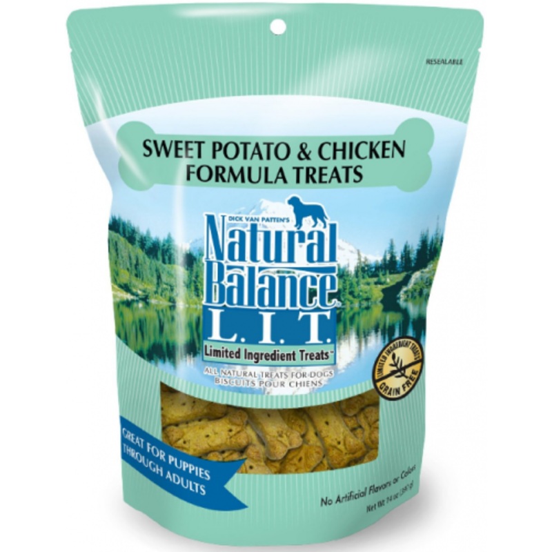 Natural Balance L.I.T. Limited Ingredient Treats Sweet Potato & Chicken Formula is a great nutritious, grain-free snack for all life stages of your dog.Our L.I.T. Formulas come in two sizes, regular and small breed!IngredientsDried Potatoes, Sweet Potatoes