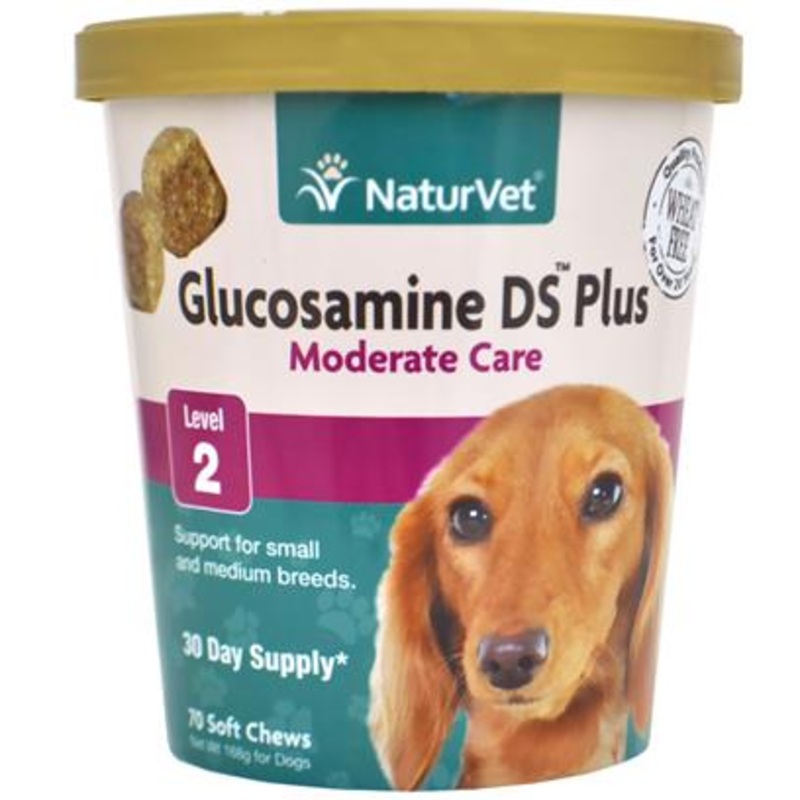 NaturVet Glucosamine DS Plus Level 2 Moderate Care Joint Support Supplement Soft Chews for Dogs and Cats is an Advanced Formula that contains MSM important antioxidants Chondroitin and Glucosamine for dogs and cats for optimal joint flexibility and cartila