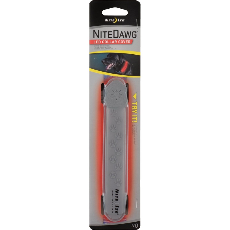 The Nite Ize Nite Dawg LED collar cover is the answer to every night-loving dog owner’s problem: losing sight of their best buddy after sundown. Durable, weather resistant and lightweight, this super low-profile (not much thicker than a bandage) flexible LED illuminated strip fits comfortably over almost any dog’s collar and closes securely with two micro hook-and-loop tabs. Its bright, light-transmitting polymer core is illuminated by a super efficient red LED bulb with two mode settings – flash and steady glow, and is housed in a high-quality thermal plastic urethane exterior. Visible up to 1000 feet in the dark, and powered by a long-life, easily replaceable battery (included), the Night Dawg LED Collar Cover is available in two colors, with decorative paw prints that provide passive reflectivity for visibility even when not illuminated.