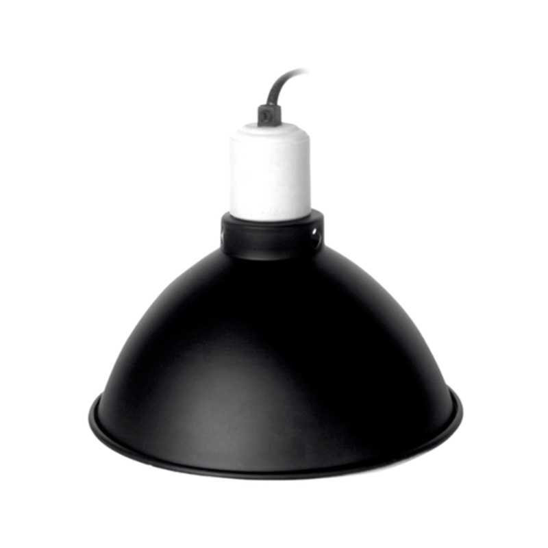 Ceramic lamp holder, high temperature resistant, can be used for a long time.Lampshade inside electroplating polish, full reflection to light source.Lampshade outside mirror surface paint, beautiful and generous.The lamp holder is provided with a heat conduction mouth for heat dissipation and ventilation.Nickel – plated lamp mouth, wear – resistant, corrosion – resistant.Copper core, more durable.Firm construction, high efficient cooling capacity.The cover is made of iron which ventilates soon and is durable.Heat prevention lamp cover for reptile heating lamp applies to the different kinds of lamps like ceramic heating lamps, day lights and night lights.Easy to install, can be used instantly.–Powder-coated black on the outside and reflective white on the inside for added luster and long lifeTopped with a ceramic socket that lasts under high heatIncludes on/off switch on the cord for greater convenienceFor use with incandescent reptile heat lamps, ceramic heat emitters, and compact fluorescent UVB lamps.