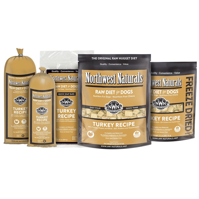 Available in: 6lb nuggets, individually wrapped dinner bars, bulk dinner bars, chubs and freeze dried diet.