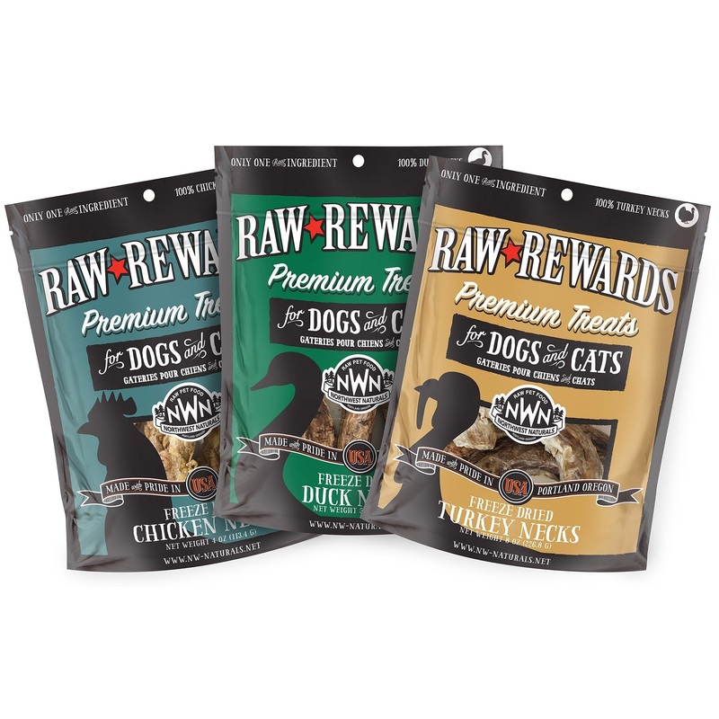 Northwest Naturals Raw Rewards Premium Dog Treats are wholesome and natural. Fulfill your dogs snacking needs with these USA Sourced Freeze Dried Necks. It is a single ingredient treat that helps support joint function by providing a natural source of glucosamine, chondroitin and omega-3 fatty acids. Dogs will enjoy chewing on these savory chews, which can also be used for training. It is packaged in a resealable Zipper bag for freshness. The Necks are gently freeze dried to ensure optimal nutritional benefit. You can feed it dry, or you can reconstitute by soaking in a dish of lukewarm water and use as a savory meal topper. Northwest Naturals are proudly Made in Portland Oregon, USA.
