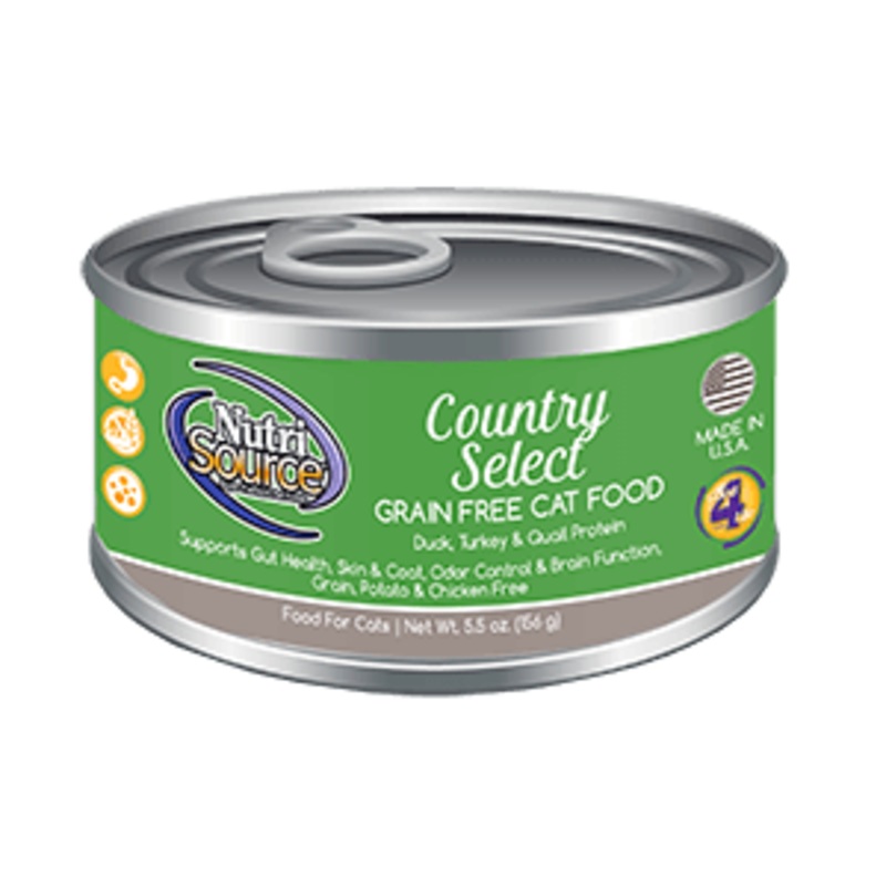 Offering a high quality, holistic recipe, NutriSource Grain Free Country Select Canned Cat Food is an easy to digest pate your cat is sure to love! This recipe also has added prebiotics and highly digestible minerals for immune and growth support. Nutrisource recipes always include their Good 4 Life system with ingredients that work together to promote gut health often showing health improvements within the first feeding!