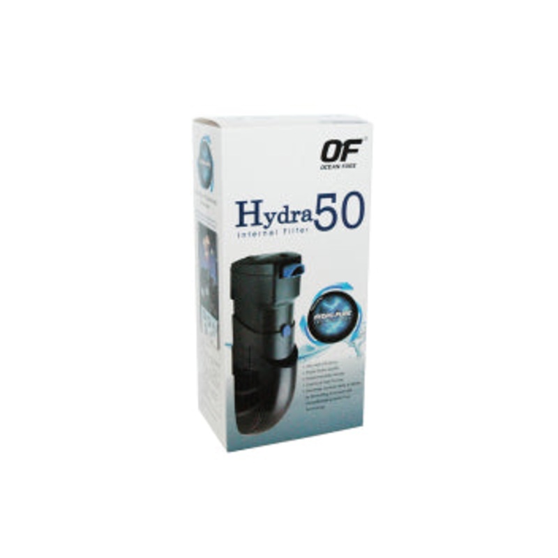 The Ocean Free Hydra 50 internal filter uses Hydro-Pure technology to ensure your tank has stable water quality while being environmentally friendly. By filtering through the Hydras 3 step process, the Hydra will turn your ammonia, nitrate, nitrite and pho
